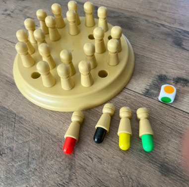 Dobbel een kleur en probeer de juiste kegel te zoeken…